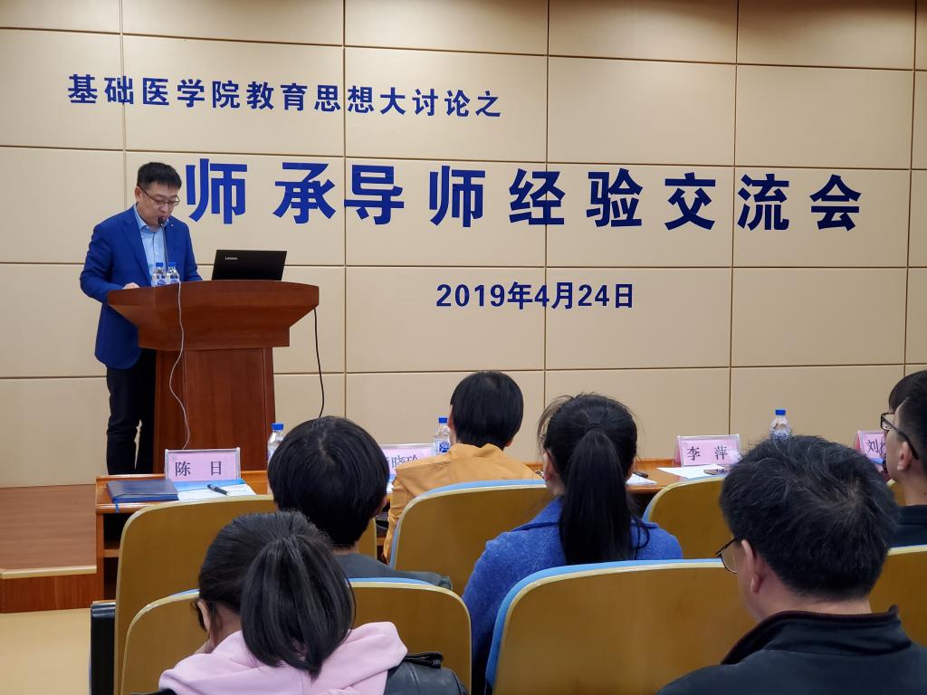 4月24日,ac米兰官方网站在菊韵报告厅召开教育思想大讨论系列活动之师承导师经验交流会。校长宋柏林,教务处副处长刘杰,ac米兰官方网站领导班子,各教研室主任,全院教师及部分师承学生参加会议,党委书记陈日主持会议。