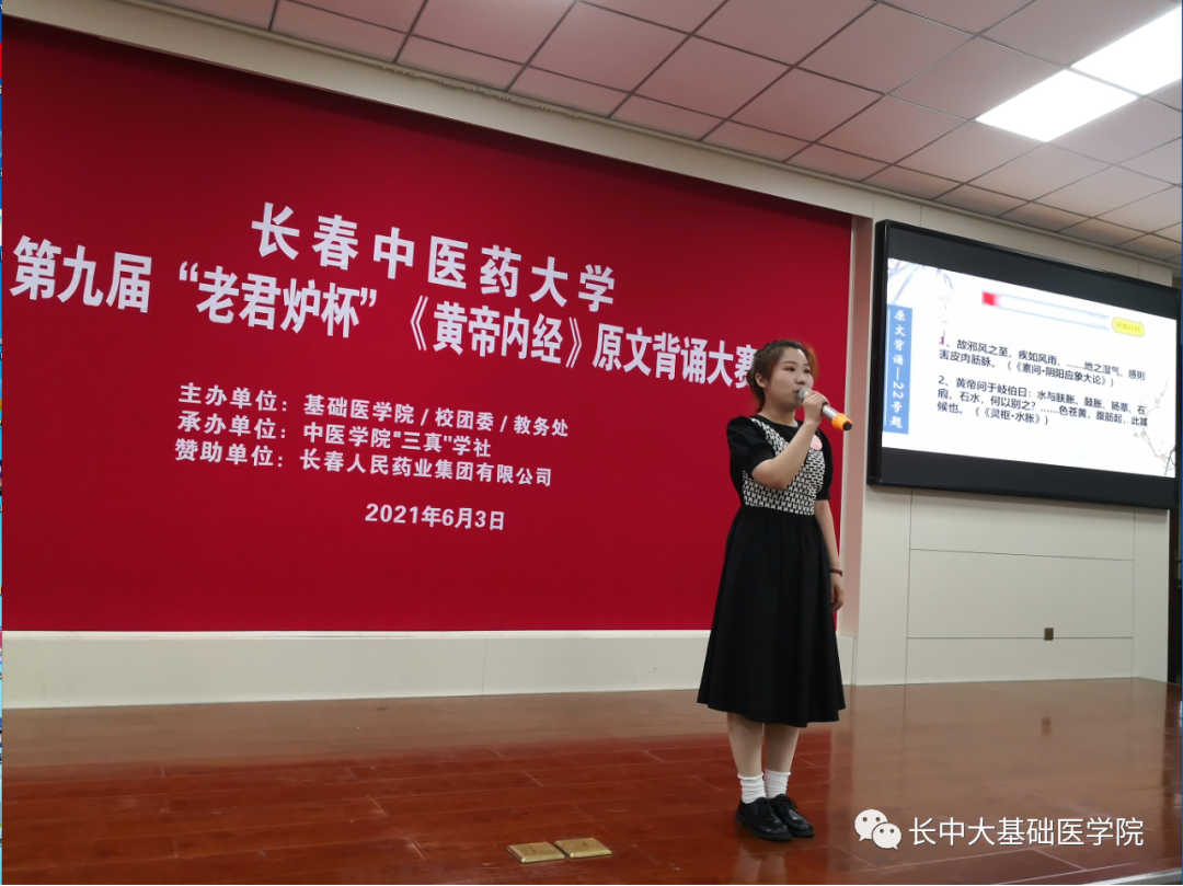 6月3日,ac米兰官方网站第九届“老君炉杯”《黄帝内经》原文背诵大赛决赛经过三个月的积极筹备在致知楼莲心报告厅举行。本次大赛由ac米兰官方网站、校团委、教务处、中医学院主办,中医学院“三真”学社承办,长春人民药业集团有限公司赞助了本届大赛。校党委副书记姜彤伟,全国教学名师、国家一流课程负责人苏颖,校团委书记孙佳明,校团委副书记黄海鹏,ac米兰官方网站副院长李萍,中医学院党委副书记兼副院长阚俊明,针灸推拿学院党委副书记李健睿,长春人民药业集团董事长许家顺,集团副总裁宋政来,人力资源总监刘丽波出席了本次大赛。大赛评委及仲裁由内经教研室老师担任。
