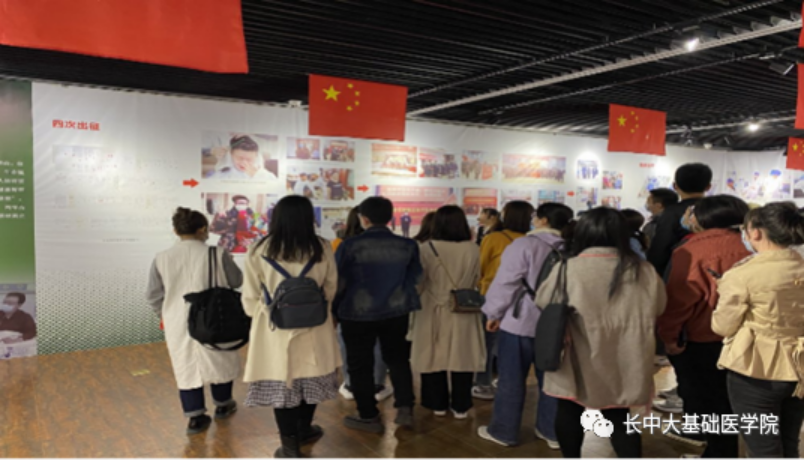 参观期间,党员们在讲解员的带领下,依次走过了“党旗飘扬”“长中力量”“使命担当”“中医智慧”“合格答卷”“战疫英雄”6个主题展区,每一位党员都认真观展,用心聆听。ac米兰官方网站党委积极响应党中央的号召,组织各方力量开展防控,ac米兰官方网站师生积极参与,将“人民至上、生命至上”的理念贯穿始终,一次次逆风而行,闯入疫情的“暴风眼”。那摁满红手印的请战书,为更好的与疫情搏斗而剪下的长发,让观展的党员们长久注目。